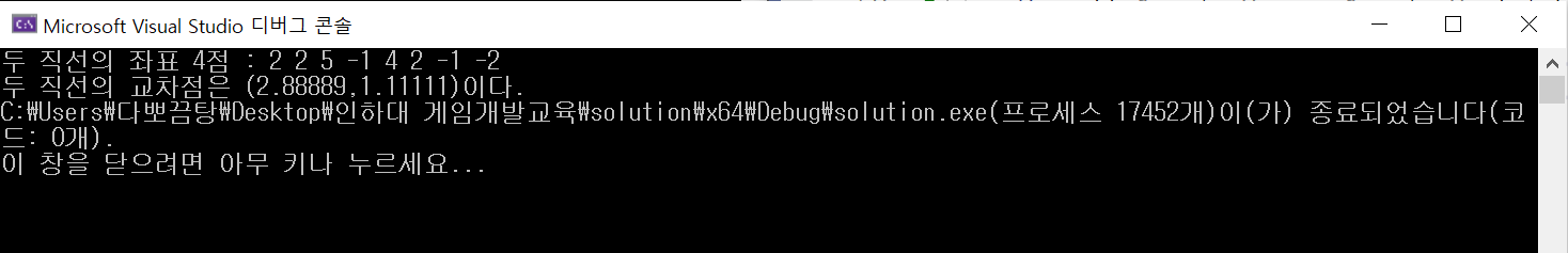 [C++] 두 선의 교차점을 구하는 프로그램 본문