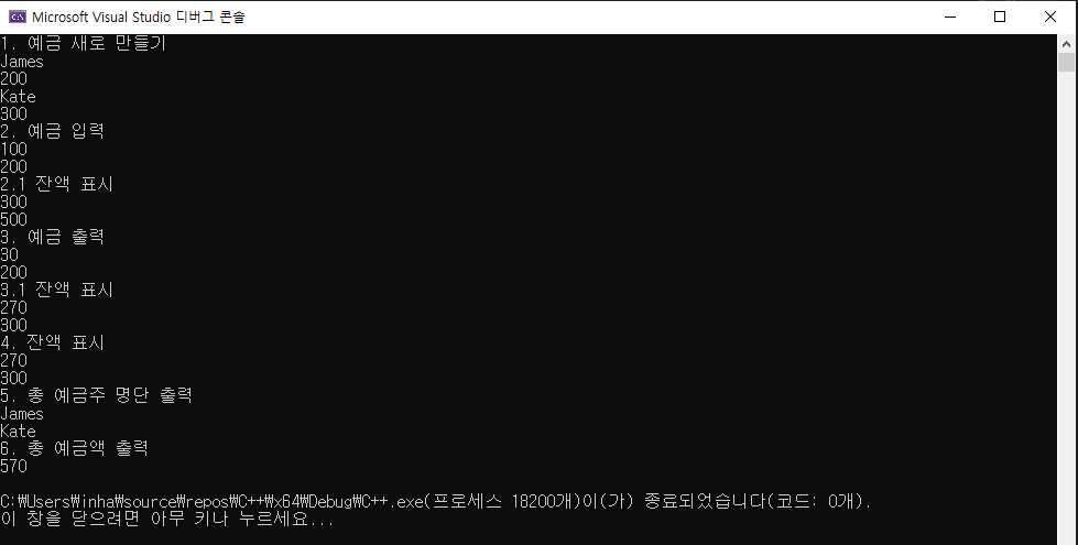 [C++] 예금주 설정, 예금 입.출금 함수, 잔액표시 함수 본문