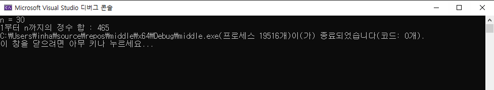 printf("1부터 n까지의 정수 합 : %d", gauss_sum(a));