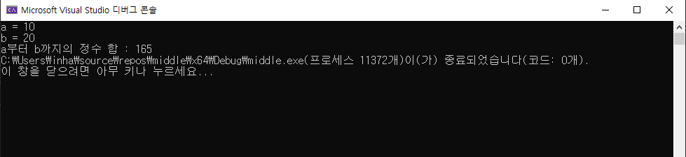 printf("a부터 b까지의 정수 합 : %d", atob_sum);
