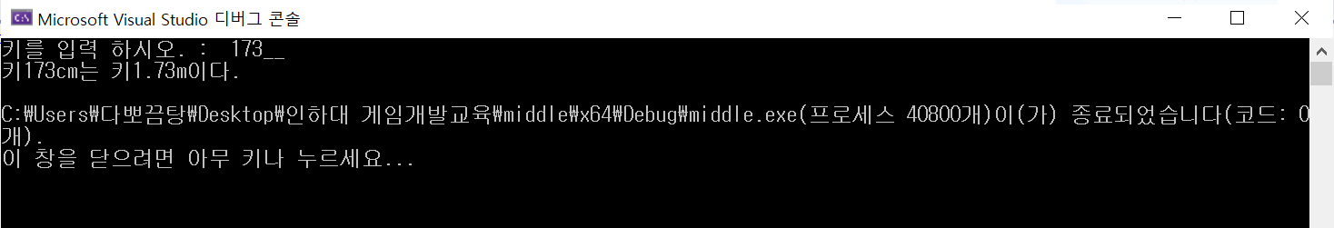 cout << "키" << centi << "cm는 키" << meter(centi) << "m이다." << endl;